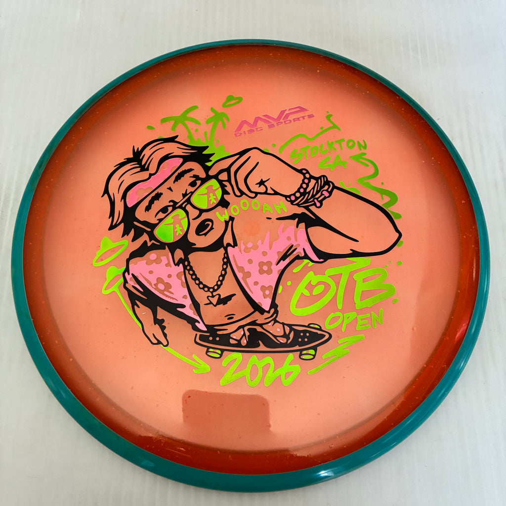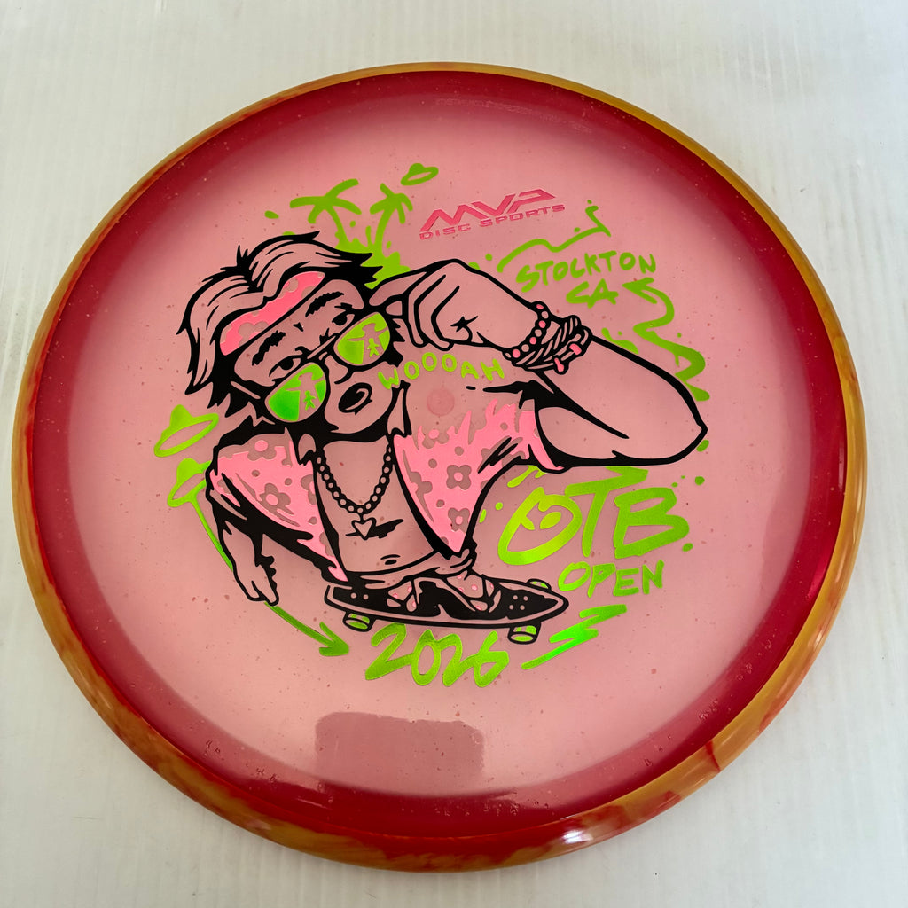 Don’t let something silly, like an alien abduction, spoil the vibes after you get the OTB Open Particle Proton Soft Hex on the course! Damian White brings his talents with a most excellent triple-foil stamp, perfect for the occasion.