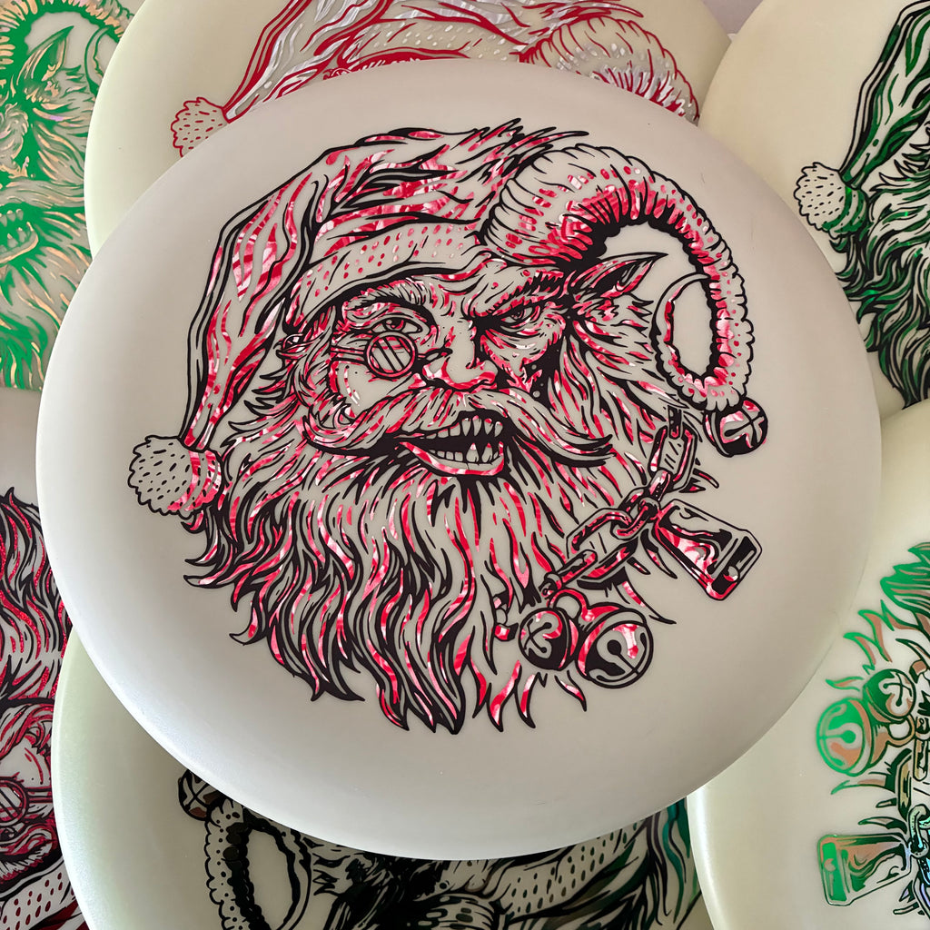 Our special holiday Krampus Claus design is probably a lot like your disc golf game: part sweet and part, well, not so sweet. But one thing’s for sure, you’ll have a whole lot of fun throwing this disc.